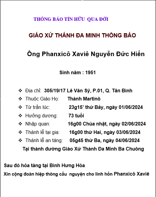 2 Published 02/06/2024 at 517 × 653 in Ái tín, Ông Phanxicô Xaviê Nguyễn Đức Hiển, thuộc Giáo họ Thánh Martinô về nhà Cha Next →