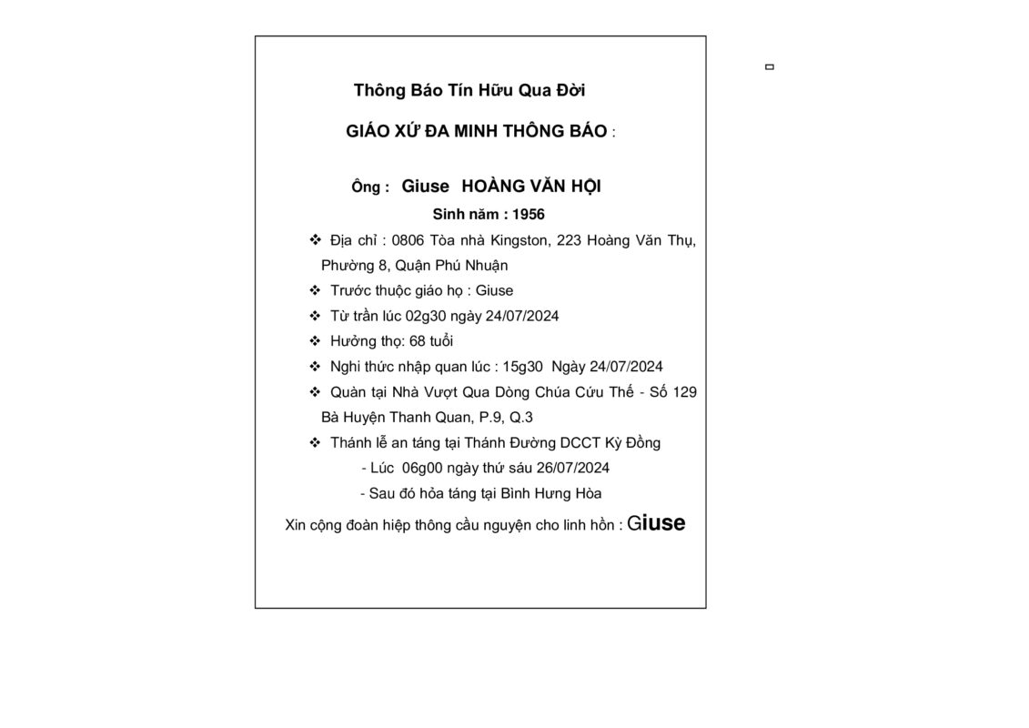 1 Published 24/07/2024 at 2339 × 1654 in Ái tín, ông Giuse Hoàng Văn Hội, trước thuộc Giáo họ Giuse, về nhà Cha