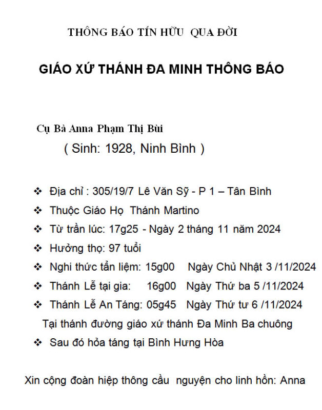 22963 Published 02/11/2024 at 655 × 835 in Ái tín, Cụ Bà Anna Phạm Thị Bùi, thuộc Giáo họ Thánh Martino, về nhà Cha