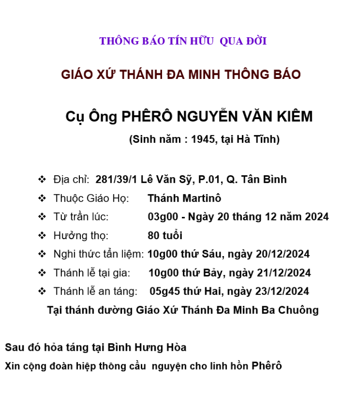 Untitled Published 20/12/2024 at 707 × 820 in Ái tín, Cụ Ông Phêrô Nguyễn Văn Kiêm, thuộc Giáo họ Thánh Martino, về nhà Cha Next →