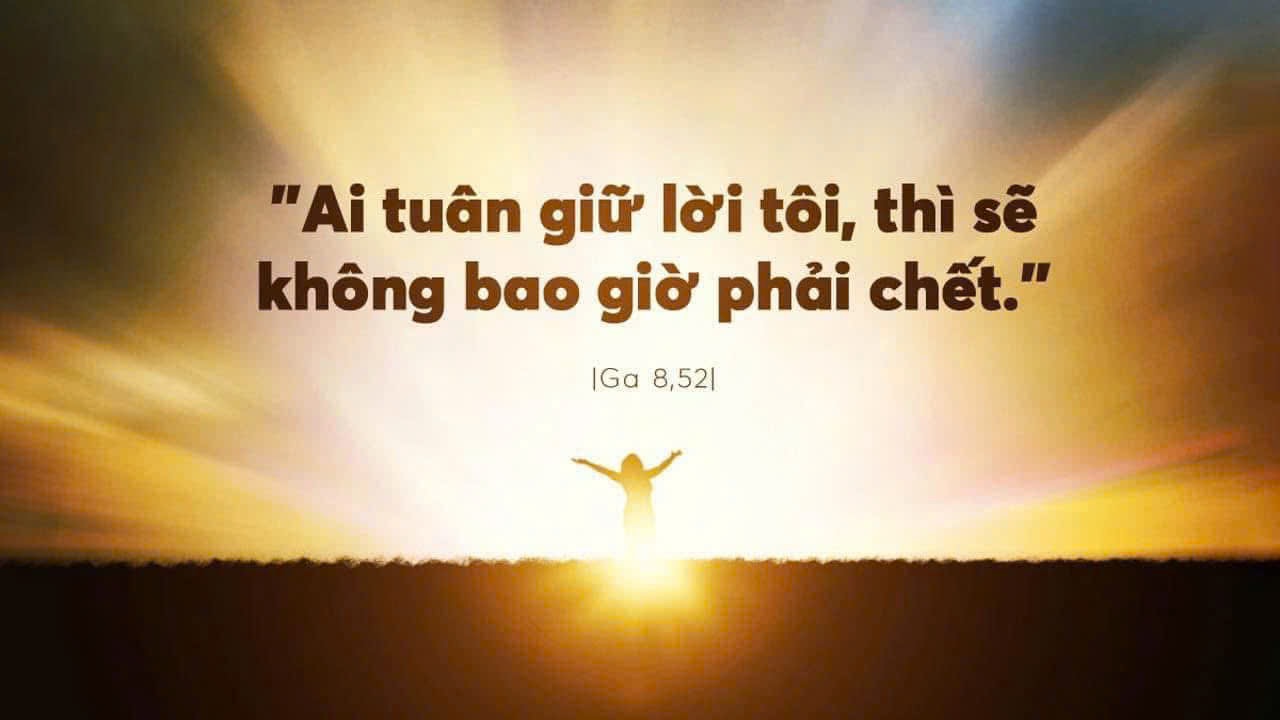 Khi ấy, Đức Giê-su nói với người Do-thái rằng : “Thật, tôi bảo thật các ông : ai tuân giữ lời tôi, thì sẽ không bao giờ phải chết.”