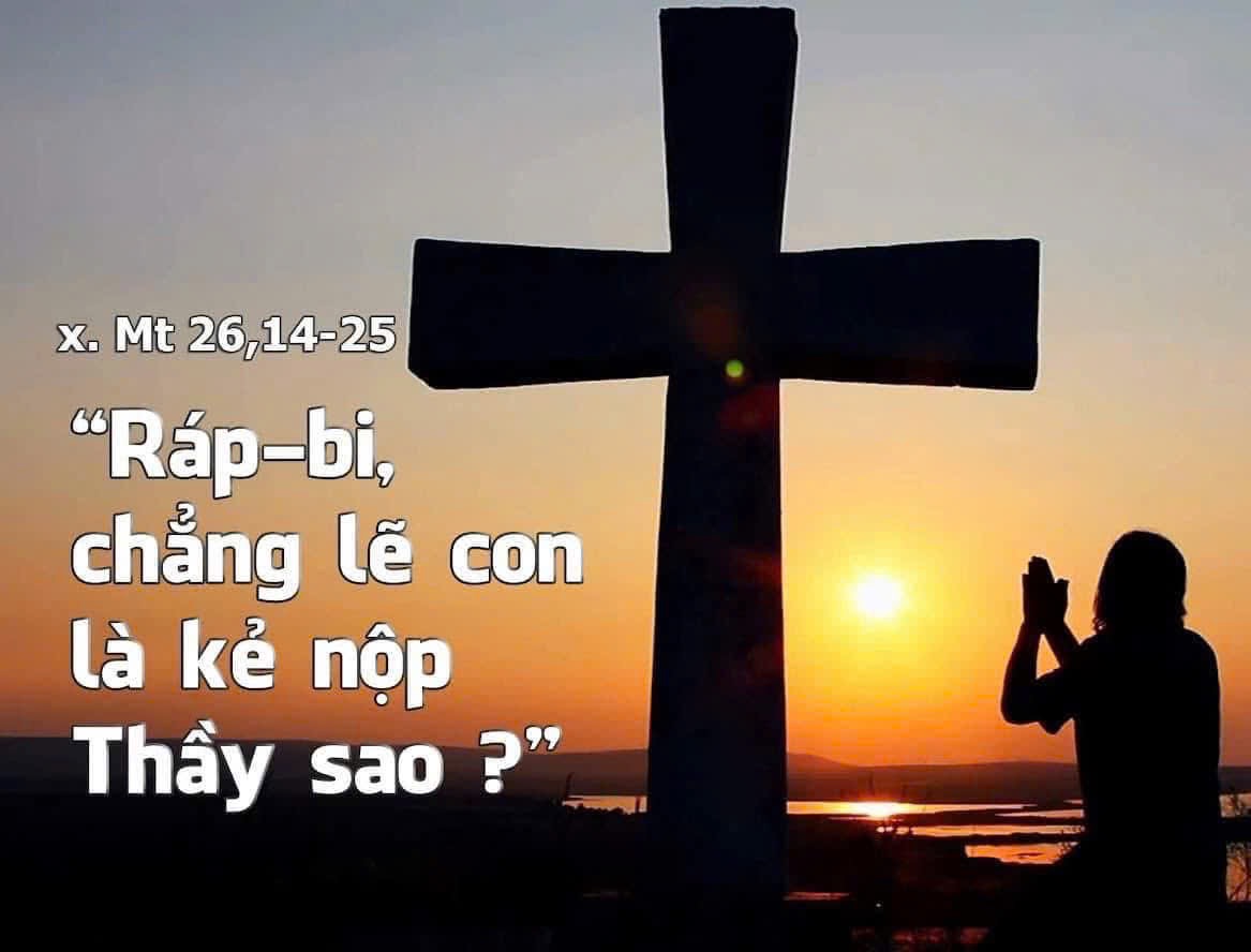 Chiều đến, Đức Giê-su vào bàn tiệc với mười hai môn đệ. Đang bữa ăn, Người nói : “Thầy bảo thật anh em, một người trong anh em sẽ nộp Thầy.” Các môn đệ buồn rầu quá sức, lần lượt hỏi Người : “Thưa Ngài, chẳng lẽ con sao ?” Người đáp : “Kẻ giơ tay chấm chung một đĩa với Thầy, đó là kẻ nộp Thầy. Đã hẳn Con Người ra đi theo như lời đã chép về Người, nhưng khốn cho kẻ nào nộp Con Người : thà nó đừng sinh ra thì hơn !” Giu-đa, kẻ nộp Người cũng hỏi : “Ráp-bi, chẳng lẽ con sao ?” Người trả lời : “Chính anh nói đó !”
