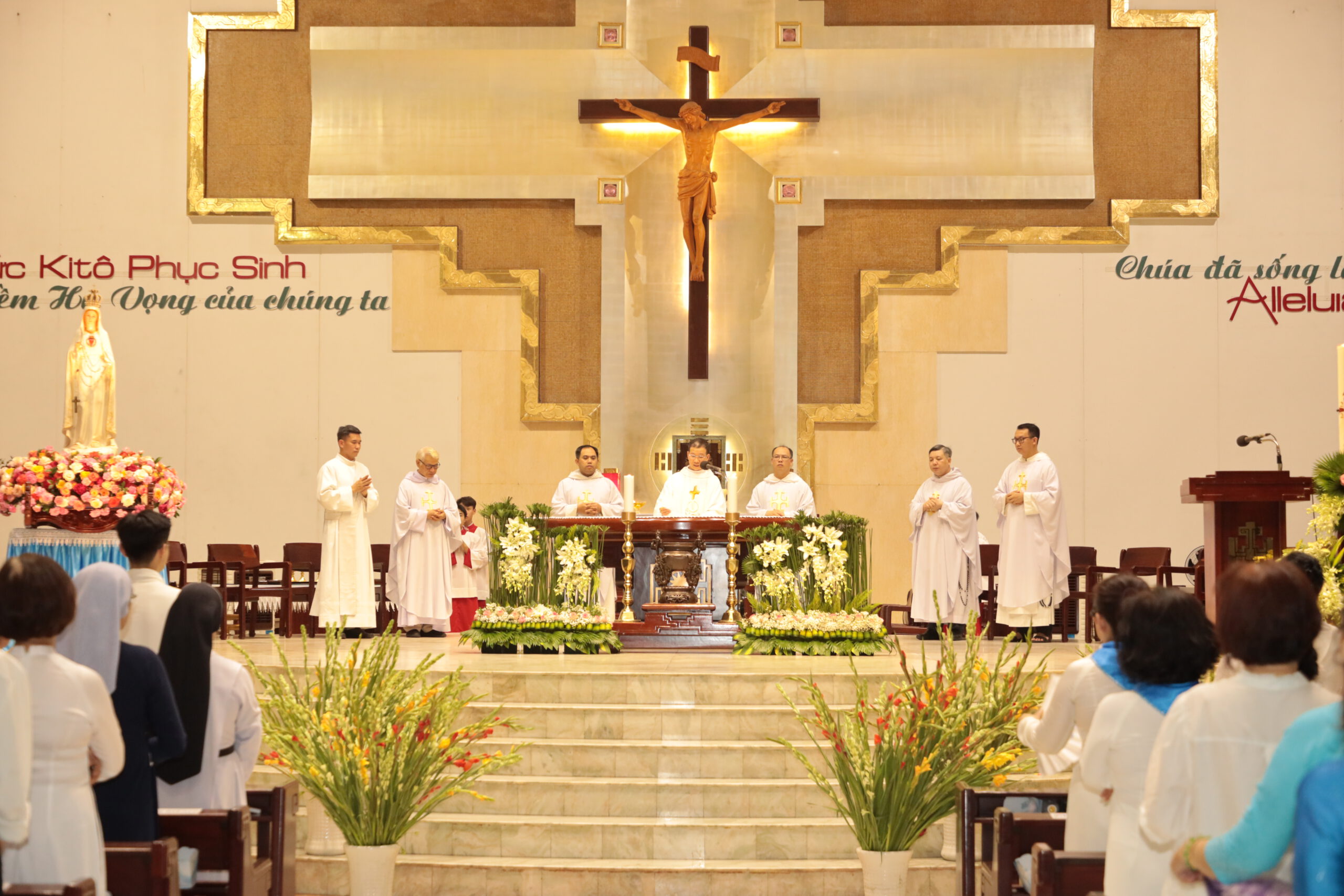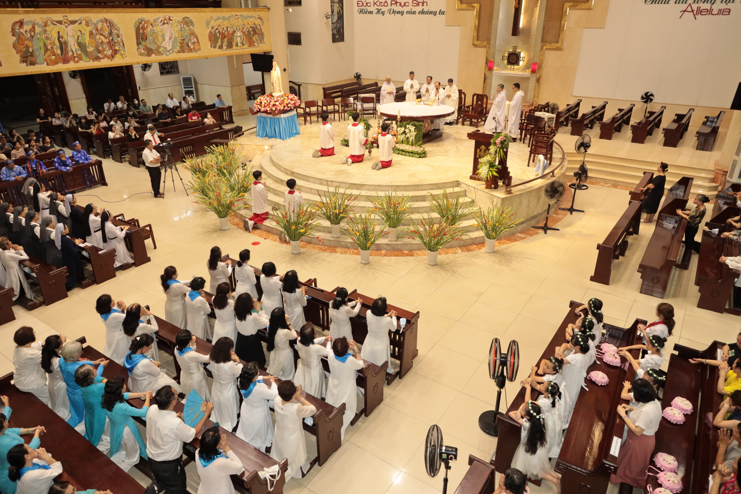 Hôm nay, trong tâm tình con thảo kính nhớ Mẹ hiền, cũng là một truyền thống tốt đẹp đã được duy trì trong nhiều năm qua, giáo xứ Thánh Đa Minh tổ chức trọng thể Thánh lễ đồng tế và rước kiệu biệt kính Đức Mẹ hiện ra tại Fatima. Thánh lễ do Cha Bề trên Chánh xứ Giuse Ngô Mạnh Cường,OP. chủ sự, cùng đồng tế có quý Cha trong tu viện thánh Alberto Cả, hiệp dâng thánh lễ có quý tu sĩ nam nữ và rất đông đảo cộng đoàn dân Chúa trong và ngoài giáo xứ.