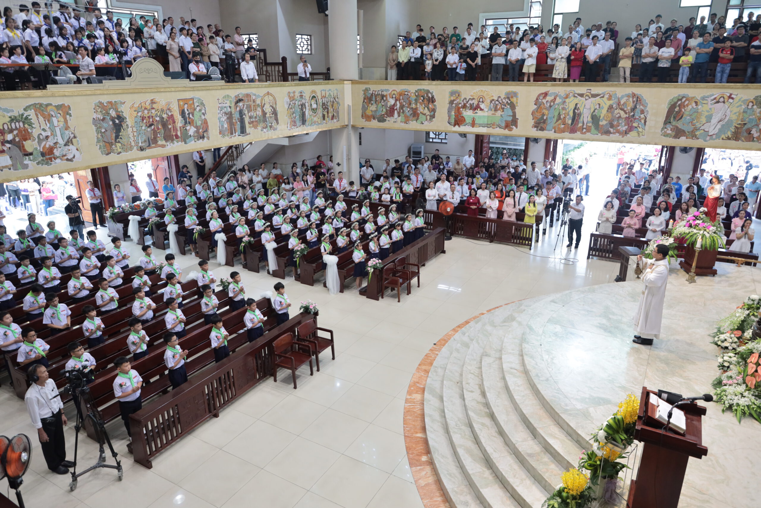 Cùng với Giáo hội mừng Lễ Mình Máu Thánh Chúa, 104 em thiếu nhi thuộc phân đoàn Ấu 3 giáo xứ Đa Minh – Ba Chuông dâng lễ tạ ơn dịp Xưng Tội Rước Lễ Lần Đầu. Thánh lễ được cử hành vào lúc 9g00 Chúa nhật, 22 tháng 06 năm 2025, do cha bề trên – chánh xứ Giuse Ngô Mạnh Cường, chủ tế, đồng tế cha tuyên uý thiếu nhi Giuse Trương Công Khiêm và quý cha tu viện Albertô.