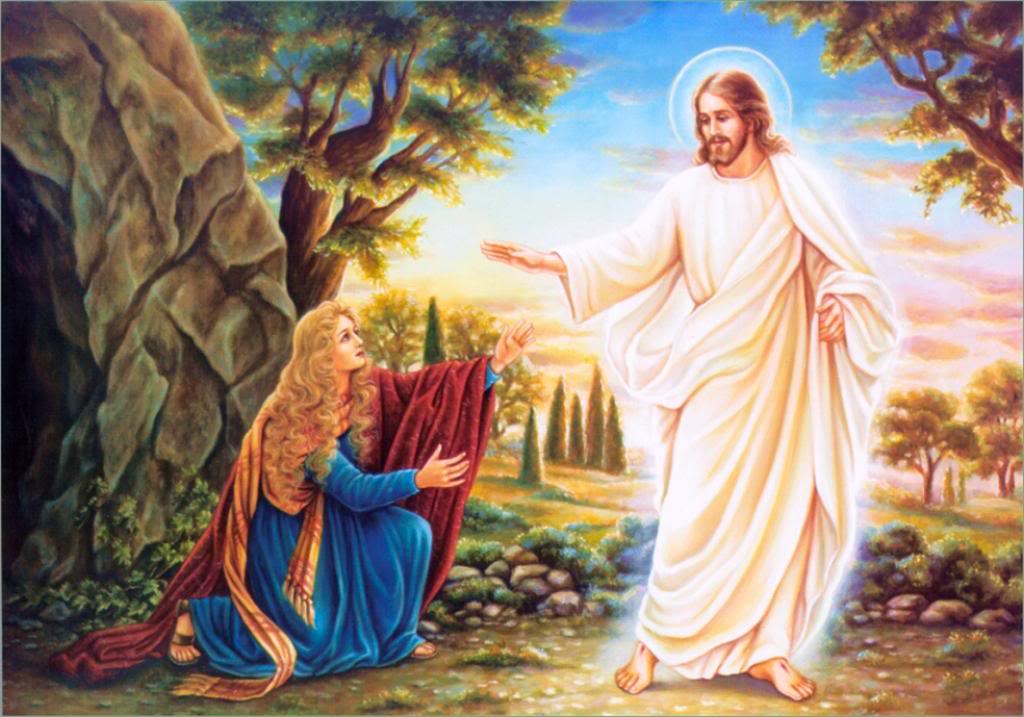 Sáng sớm ngày thứ nhất trong tuần, lúc trời còn tối, bà Maria Mácđala đi đến mộ, thì thấy tảng đá đã lăn khỏi mộ. Bà liền chạy về gặp ông Simôn Phêrô và người môn đệ Đức Giêsu thương mến. Bà nói: “Người ta đã đem Chúa đi khỏi mộ; và chúng tôi chẳng biết họ để Người ở đâu.” Bà Maria Mácđala đứng ở ngoài, gần bên mộ, mà khóc. Bà vừa khóc vừa cúi xuống nhìn vào trong mộ, thì thấy hai thiên thần mặc áo trắng ngồi ở nơi đã đặt thi hài của Đức Giêsu, một vị ở phía đầu, một vị ở phía chân. Thiên thần hỏi bà: “Này bà, sao bà khóc?” Bà thưa: “Người ta đã lấy mất Chúa tôi rồi, và tôi không biết họ để Người ở đâu!” Nói xong, bà quay lại và thấy Đức Giêsu đứng đó, nhưng bà không biết là Đức Giêsu. Đức Giêsu nói với bà: “Này bà, sao bà khóc? Bà tìm ai?” Bà Maria tưởng là người làm vườn, liền nói: “Thưa ông, nếu ông đã đem Người đi, thì xin nói cho tôi biết ông để Người ở đâu, tôi sẽ đem Người về.” Đức Giêsu gọi bà: “Maria!” Bà quay lại và nói bằng tiếng Hípri: “Rápbuni !” (nghĩa là ‘Lạy Thầy’). Đức Giêsu bảo: “Thôi, đừng giữ Thầy lại, vì Thầy chưa lên cùng Chúa Cha. Nhưng hãy đi gặp anh em Thầy và bảo họ: ‘Thầy lên cùng Cha của Thầy, cũng là Cha của anh em, lên cùng Thiên Chúa của Thầy, cũng là Thiên Chúa của anh em.’” Bà Maria Mácđala đi báo cho các môn đệ: “Tôi đã thấy Chúa”, và bà kể lại những điều Người đã nói với bà. (Ga 20,1-2. 11-18)