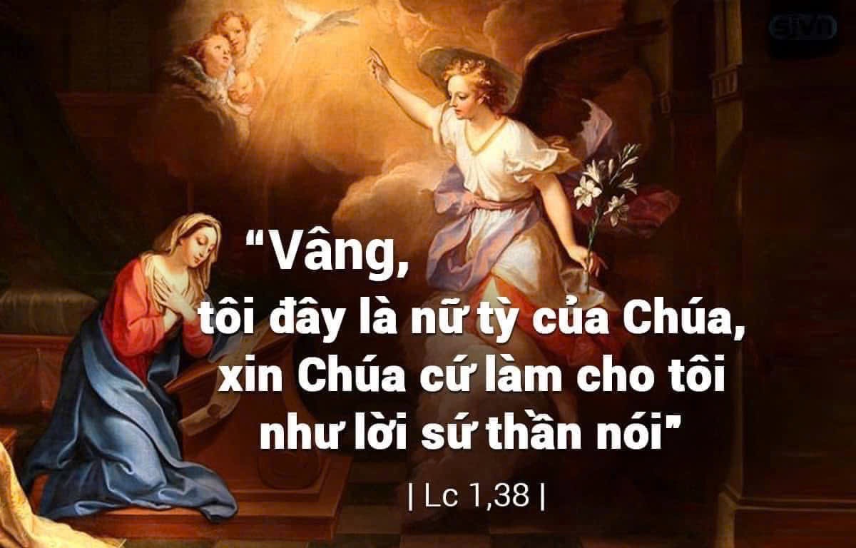Bấy giờ bà Ma-ri-a nói với sứ thần : “Vâng, tôi đây là nữ tỳ của Chúa, xin Người thực hiện cho tôi như lời sứ thần nói.” Rồi sứ thần từ biệt ra đi.