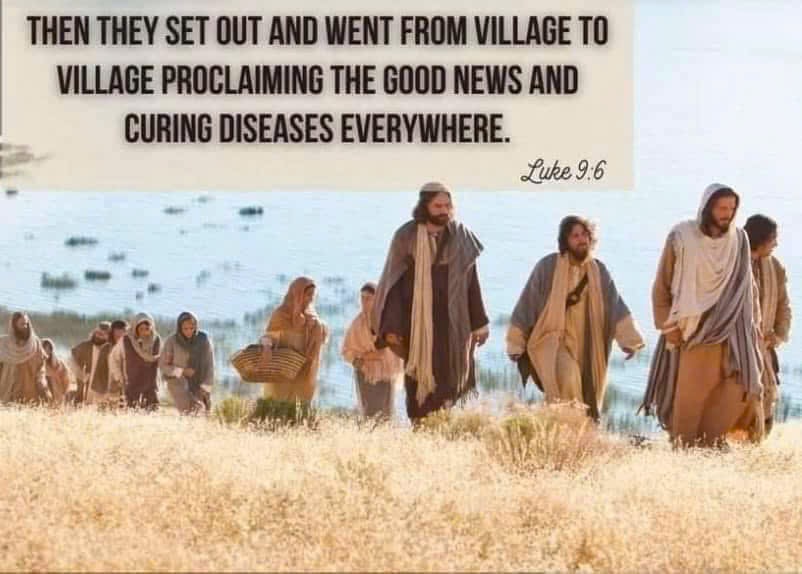 Khi ấy, Đức Giê-su tập họp Nhóm Mười Hai lại, ban cho các ông năng lực và quyền phép để trừ mọi thứ quỷ và chữa các bệnh tật. Người sai các ông đi rao giảng Nước Thiên Chúa và chữa lành bệnh nhân. Người nói : “Anh em đừng mang gì đi đường, đừng mang gậy, bao bị, lương thực, tiền bạc, cũng đừng có hai áo. Khi anh em vào bất cứ nhà nào, thì ở lại đó và cũng từ đó mà ra đi. Hễ người ta không đón tiếp anh em, thì khi ra khỏi thành, anh em hãy giũ bụi chân để tỏ ý phản đối họ.” Các ông ra đi, rảo qua các làng mạc loan báo Tin Mừng và chữa bệnh khắp nơi.