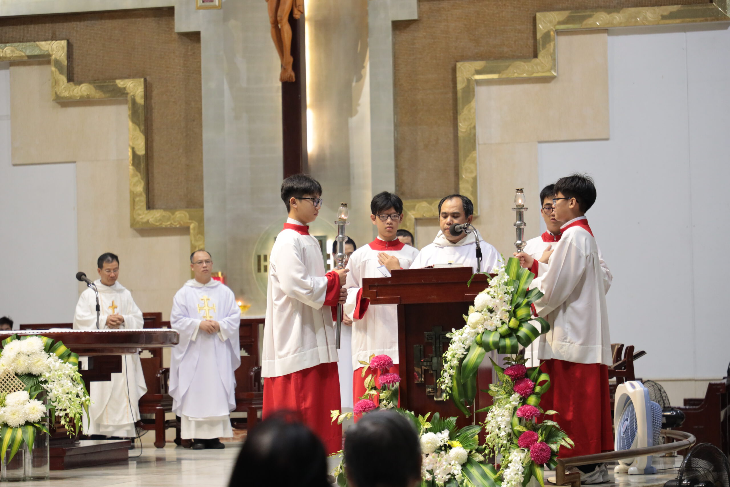 Ngày hôm nay khi chúng ta cử hành Thánh lễ đặc biệt này dù ngoài trời đang mưa, nhưng chúng ta có thể nghĩ đây là mưa hồng ân, cũng là một cách để chúng ta thông phần với đồng bào miền Trung và miền Bắc đang gánh những trận mưa bão triền miên. Có những trận mưa, bão khiến những dự tính, hoạch định của chúng ta phải rẽ sang một hướng khác, với Mẹ Maria cũng thế, Mẹ chắc chắn cũng có những hoạch định cho cuộc đời của Mẹ ngày ấy, thế nhưng khi Thiên Chúa muốn Mẹ cộng tác vào công trình cứu độ thì Mẹ đã mau mắn đáp lời. Mỗi Kitô hữu đều sẽ có ơn gọi của Chúa trong từng người và chúng ta có học theo Mẹ đáp “Xin Vâng” không?