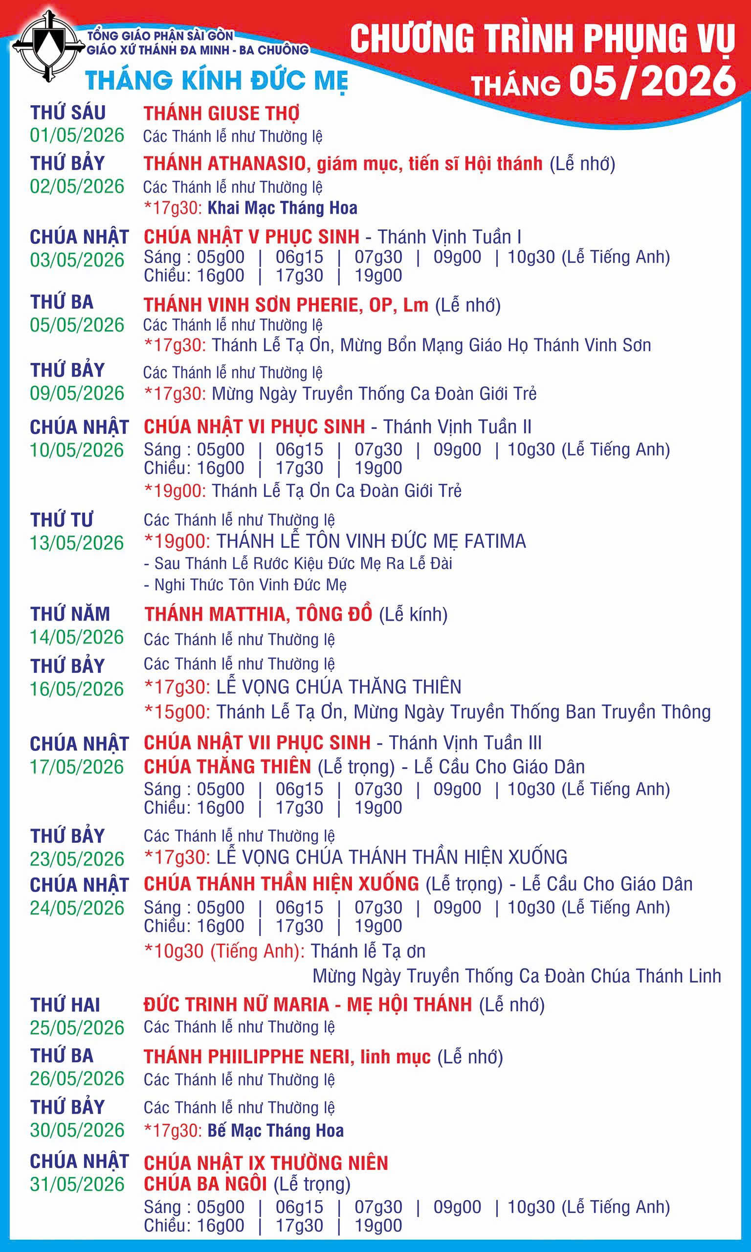 Thông Báo Lịch phụng vụ tháng 5/2026 Posted on 30/04/2026 by ctvien ctvien 7 Những người bảo vệ sự sống tiếp tục giành thắng lợi tại hội nghị Liên Hiệp Quốc