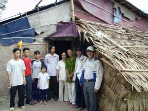 nay có một số gia đ́nh nhà bị dột, nên con đang giúp họ lợp lại