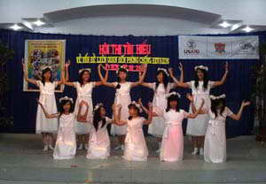 dáng trong những cánh áo đầm kim tuyến; đội trẻ giáo xứ