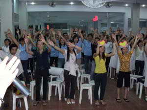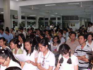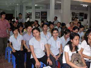 khoảng 20 thành viên của mỗi nhóm, trong hội trường c̣n