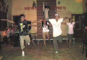 khách, người phục vụ, người hỏi thăm xem các bạn trẻ đến từ đâu,