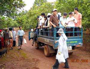đến làng xấu nên xe cứu trợ của đoàn không thể vào được. Không