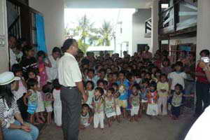 Sau Thánh lễ đoàn đă gửi tặng cho các em tập và quần áo.