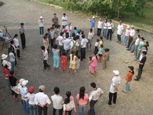 nh́n chúng tôi cḥng chọc. Có cả những tiếng cười lanh lảnh,