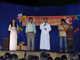 Chương tŕnh được kéo dài cho tới khoảng 10 giờ đêm mới kết thúc. Các em ra về mà ḷng tràn ngập niềm vui, hạnh phúc, trên tay em nào cũng có một vài phần quà để mang về khoe với bố mẹ. C̣n chúng tôi th́ tiếp tục dọn dẹp “chiến trường”. Nh́n thấy sự nhiệt t́nh của các bạn mà tôi cảm thấy rằng các bạn “trên cả tuyệt vời”. Vâng, đây là lần thứ hai trong bài viết này tôi khen các bạn sinh viên của nhóm Sinh Viên Mai Khôi như thế và thật sự là đúng như vậy. Bắt tay vào công việc từ 2 giờ chiều măi cho tới 10 giờ đêm, nh́n thấy ai cũng lờ đờ v́ mệt, quần áo th́ ướt đẫm mồ hôi, nhưng mà trên môi không ngớt tiếng nói cười rôm rả, chắc hẳn sau chuyến đi này các bạn sẽ cảm thấy hạnh phúc v́ chính từ đôi tay của các bạn đă mang đến cho các em niềm vui trong ngày trung thu này. Đồng thời các bạn cũng sẽ học tập được nhiều điều hữu ích cho cuộc sống của ḿnh… Mong rằng ngày càng có thêm nhiều bạn sinh viên luôn biết sống dấn thân và sử dụng sự hiểu biết của ḿnh làm đẹp cho Giáo hội và Xă hội, đồng thời sẻ chia cho nhau những t́nh cảm thiêng liêng và chan chứa t́nh người. Một lần nữa chúng con xin cám ơn quư Cha, quư thầy, đặc biệt quư Cha, quư thầy, trong Tu viện Mai Khôi và quư vị ân nhân đă ủng hộ về vật chất lẫn tinh thần cho nhóm Sinh viên chúng con trong việc tổ chức chương tŕnh trung thu lần này. Ước mong Nhóm sinh viên Mai Khôi ngày càng phát triển và làm được nhiều điều hữu ích cho nhau, cho Ḍng, cho Giáo hội và Xă hội. Dom. Nhật Trường.