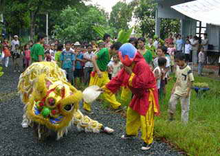 Khoảng 11 giờ trưa ngày 13/09/2008 nhóm Sinh Viên Mai Khôi đă lên đường về với Giáo Xứ Hoà Thạnh. Trong chuyến đi, chúng tôi mang theo rất nhiều thứ như : quà, bánh trung thu, lồng đèn, đầu Lân… nhưng có một cái mà không ai trong chúng tôi sau chuyến đi này có thể quên được đó là sự nhiệt t́nh hăng say của tuổi trẻ, và cái quan trọng nhất là tinh thần sẻ chia, sẻ chia t́nh người và trao ban niềm hạnh phúc cho nhau. Trên chuyến đi chúng tôi không ngừng hát ḥ vui chơi giao lưu với nhau, tuy trên xe, nhưng không khí thật ấm cúng và chan hoà t́nh thân thương giữa những những bạn sinh viên những con người cùng có chung “một tấm ḷng”.