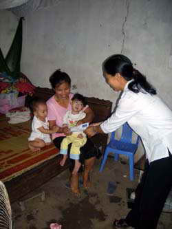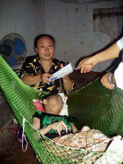hai mẹ con khi chị bị bệnh. Khi biết chúng tôi tới thăm,