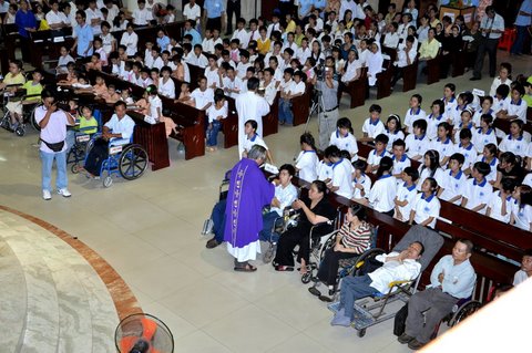 tật Khiếm thị phụ trách. Các em đọc “bằng” tay để Lời Chúa được
